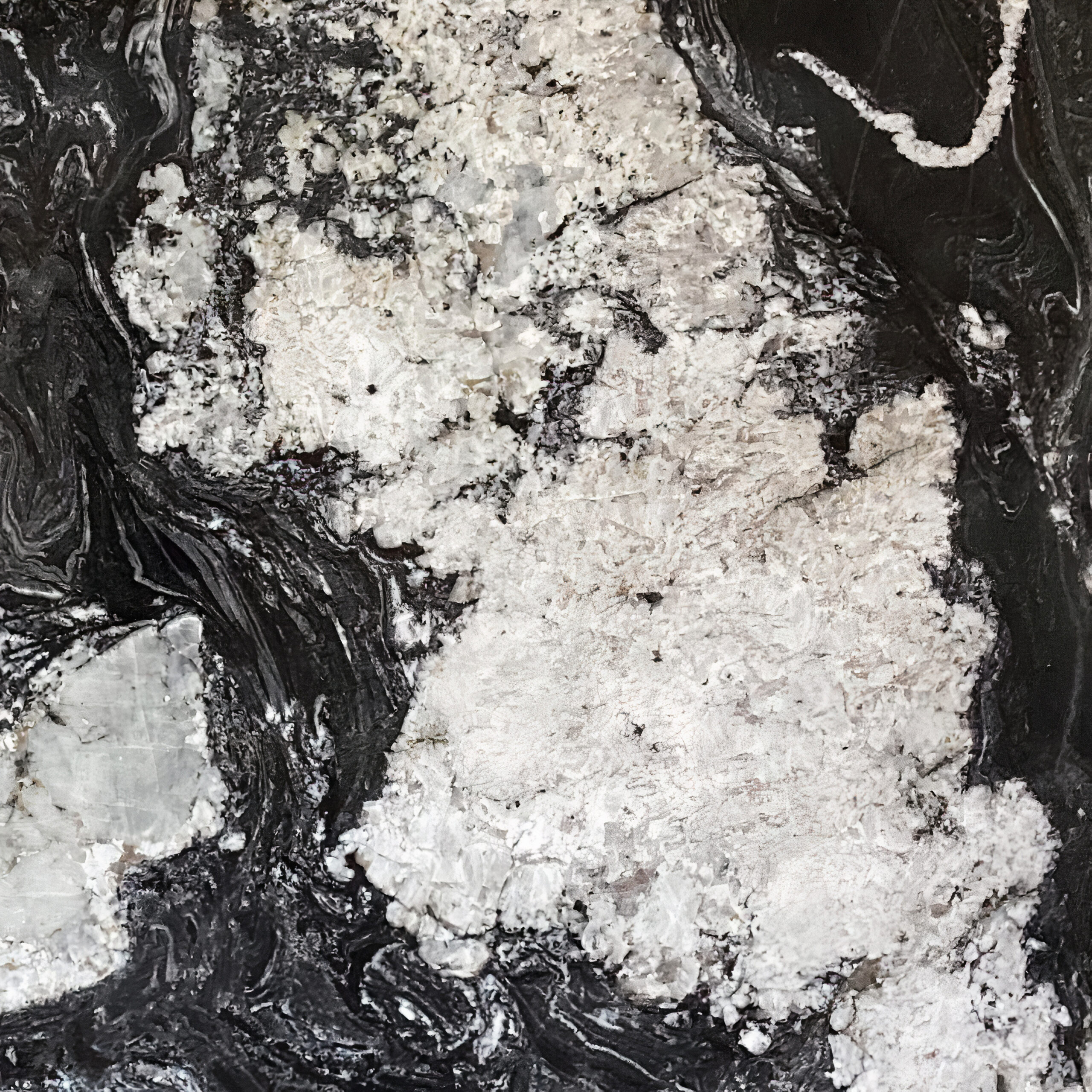 Quartzito exótico de alto impacto visual, com base branca cristalina e veios pretos intensos que criam um efeito dramático e sofisticado. A sua estrutura densa e resistência natural tornam este material ideal para aplicações que exigem beleza e durabilidade.