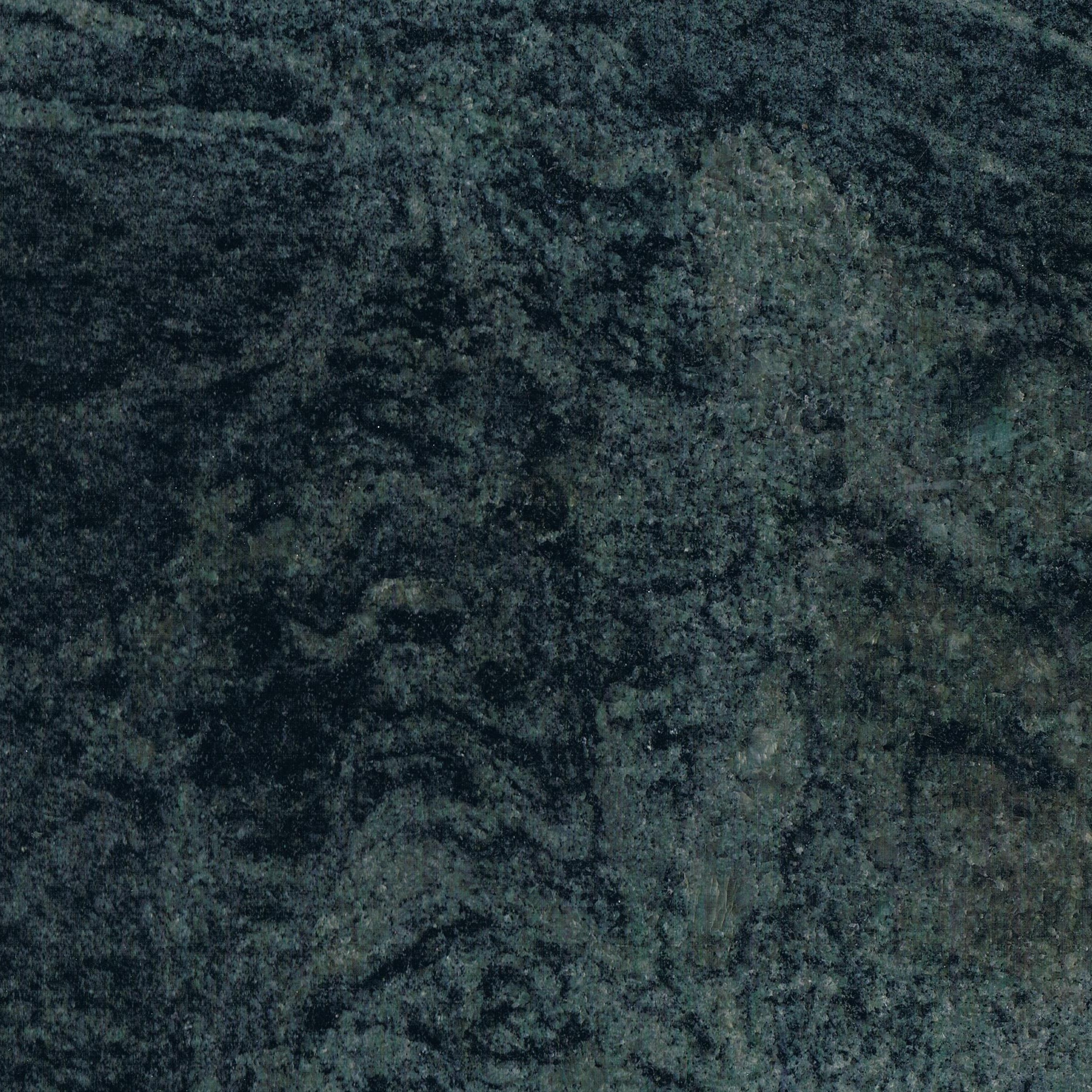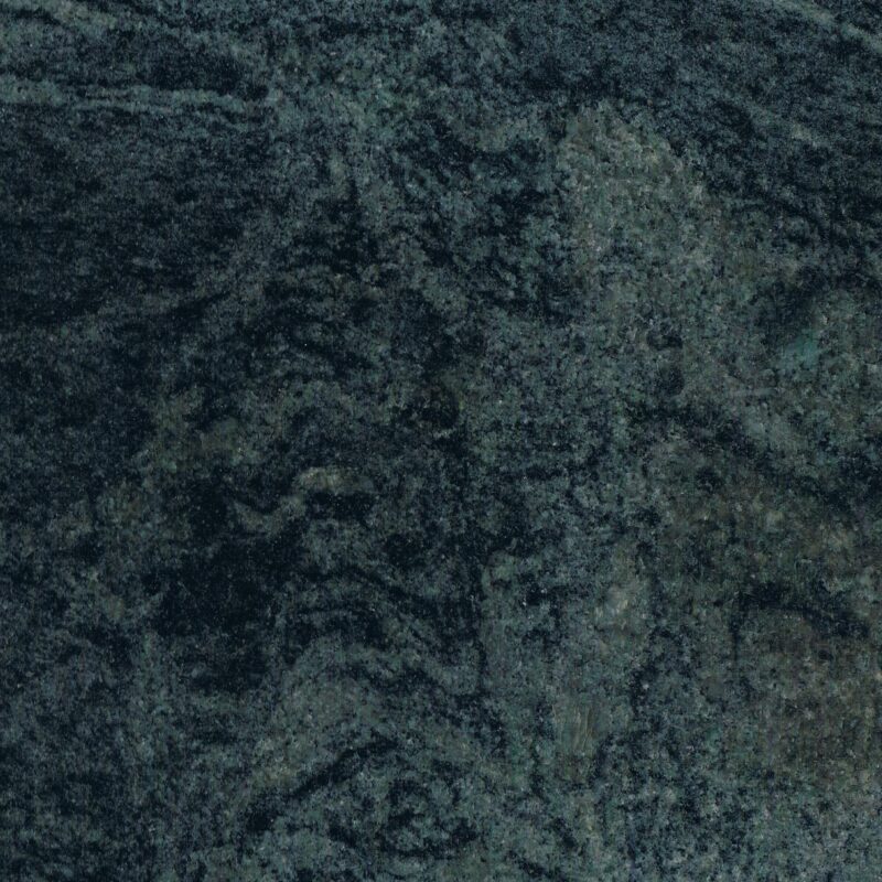 Granito brasileiro clássico com tons intensos de verde, realçados por padrões minerais escuros e claros, conferindo um aspeto intemporal e elegante.